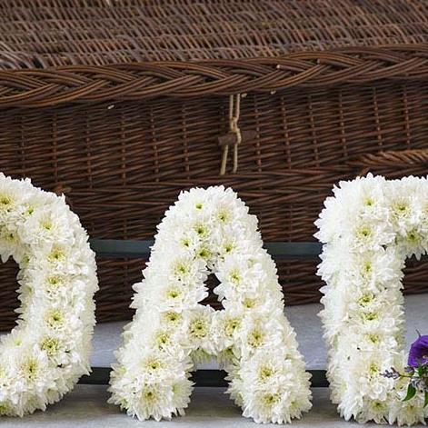 This elegant tribute is crafted using white chrysanthemums, finished with clusters of blue and white blooms including clematis and lisianthus.