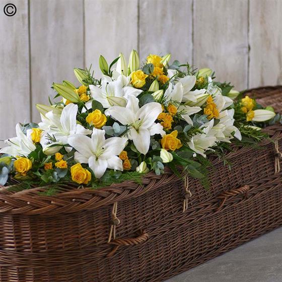 A classic spray of roses and fragrant oriental lilies contrasted beautifully with foliage.
