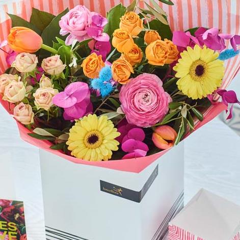 Treat mum to gorgeous blooms plus some lovely extras. She’ll get a gorgeous bouquet handcrafted by a local florist, plus delicious gourmet chocolates and a lovely full-sized card (the florist will pop your message inside). This year our Mother’s Day bouquets are all about gorgeous pastels with pops of colour. Expect to see blooms in shades of baby pink, cream, and lemon with bursts of cerise and tangerine, and highlights of pale blue and lilac.